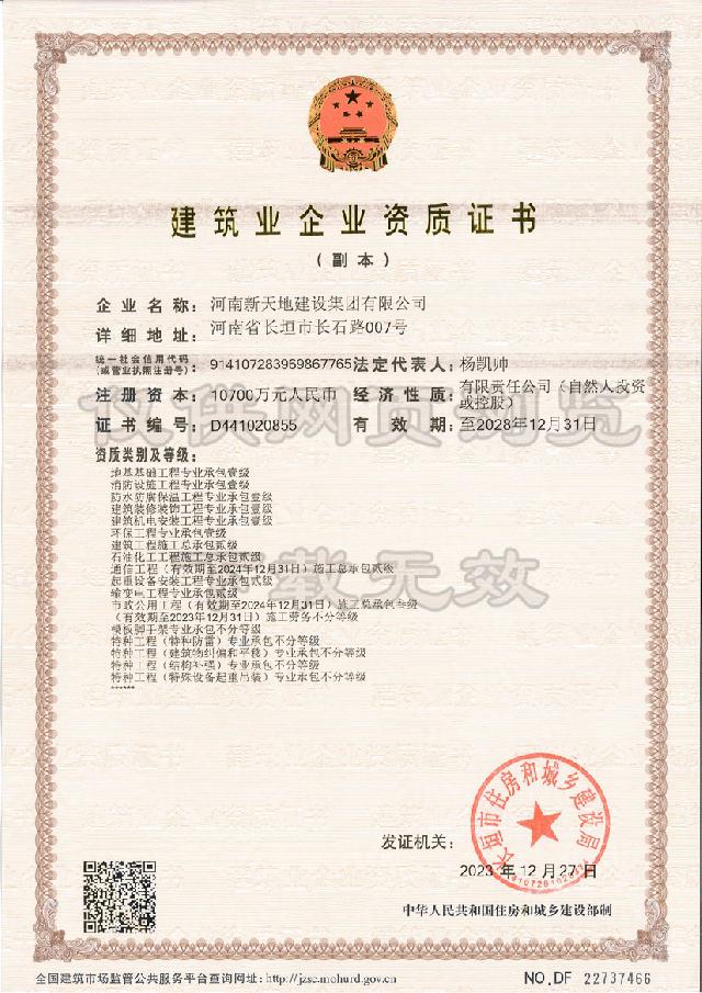 河南新天地建设集团有限公司