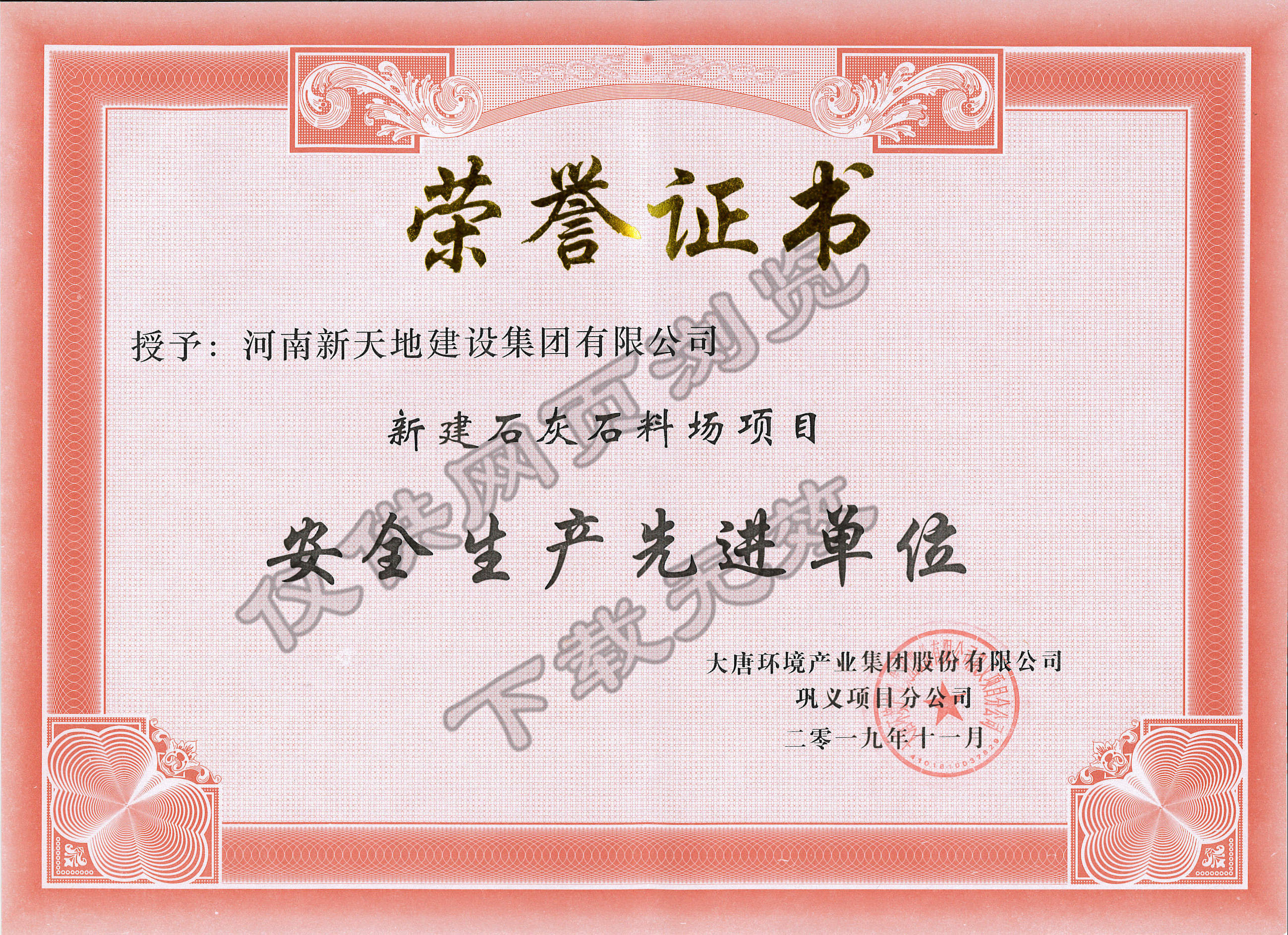 大唐环境-安全生产先进单位-新建石灰石料场项目