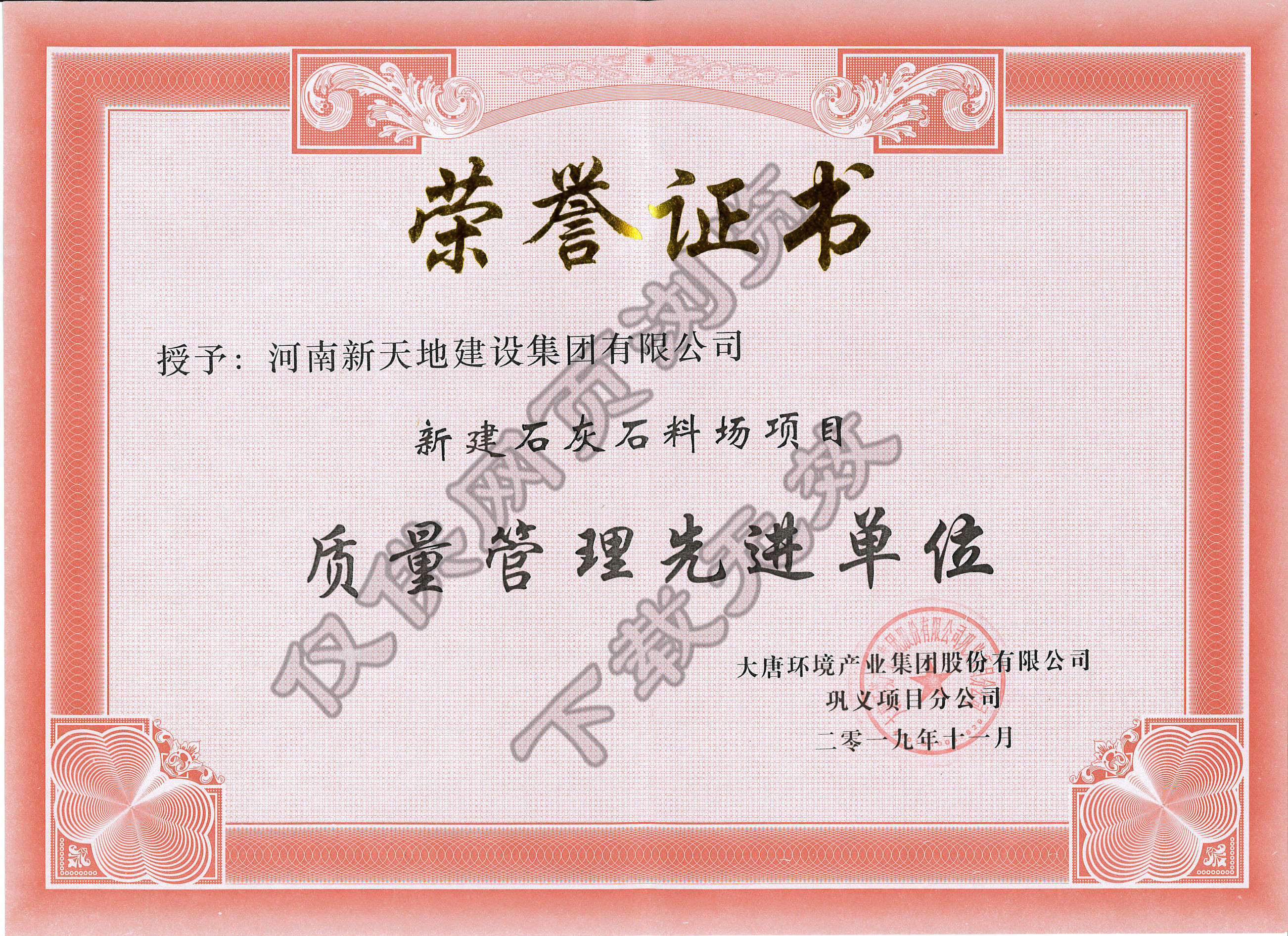 大唐环境-质量管理先进单位-新建石灰石料场项目